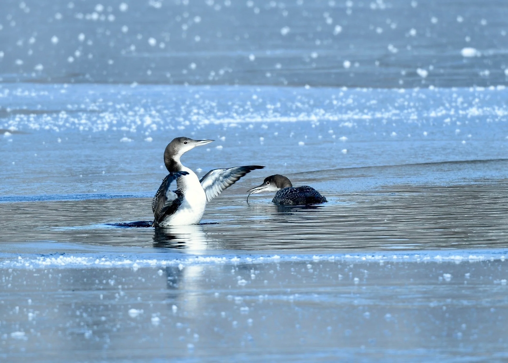 Loons trapped by the ice on Fourth Lake. Photo by Don Andrews.